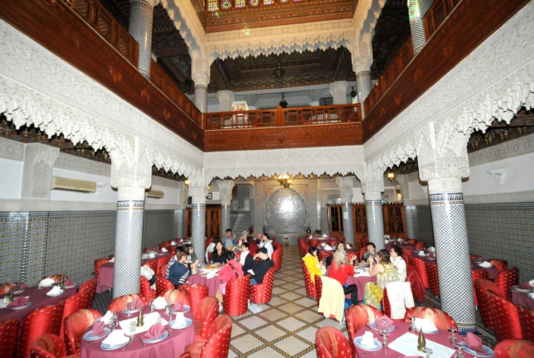 Savor traditional Fez dishes with live music and vibrant ambiance.
